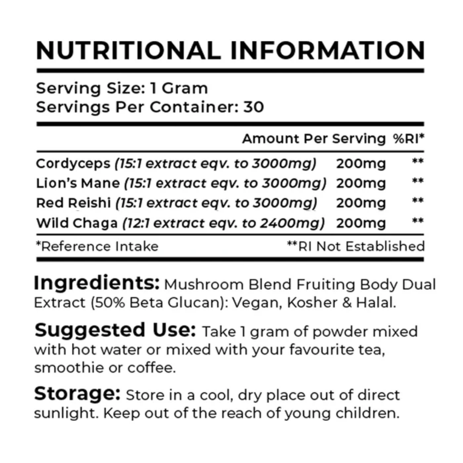 Complex 5 is a unique blend of five functional mushrooms: Lion's Mane, Cordyceps, Reishi and Chaga. Each of these ingredients has a rich history of use in traditional wellness practices across the globe.